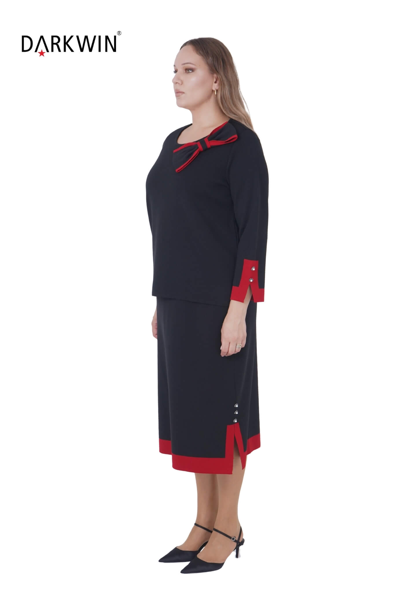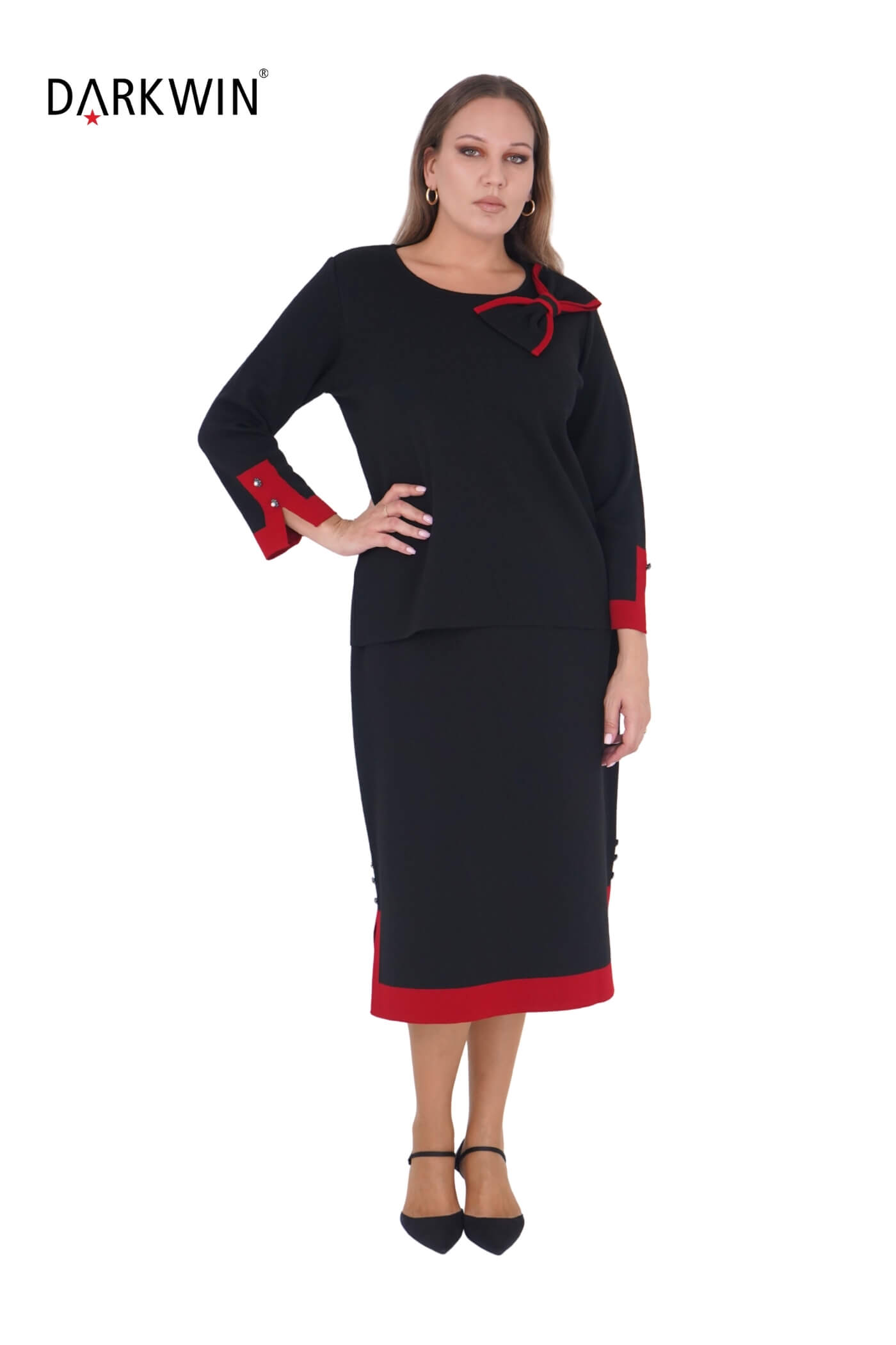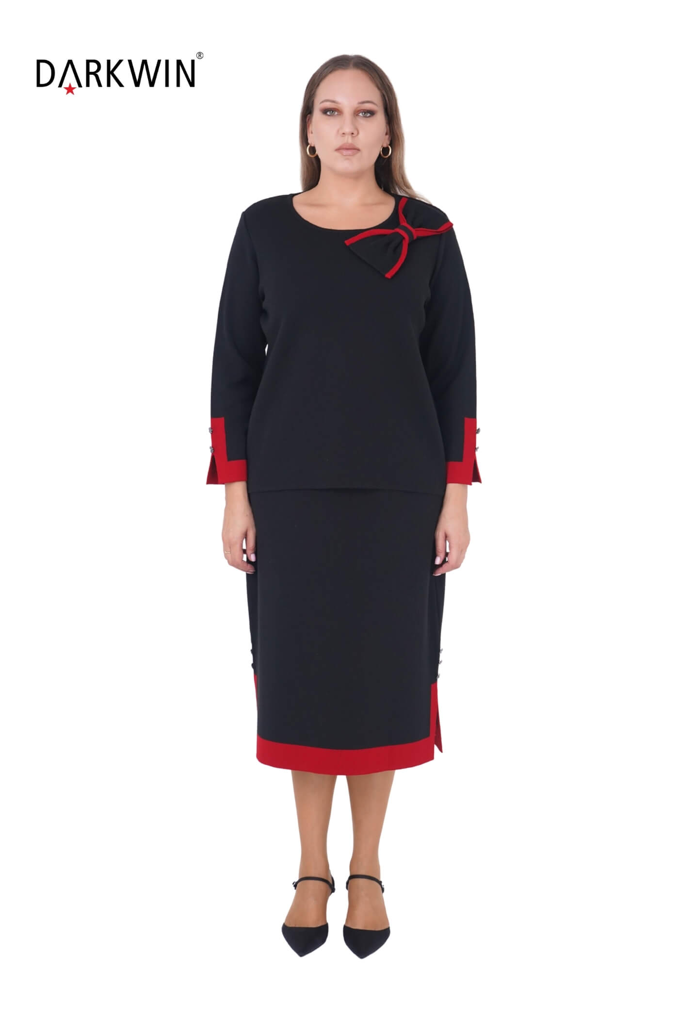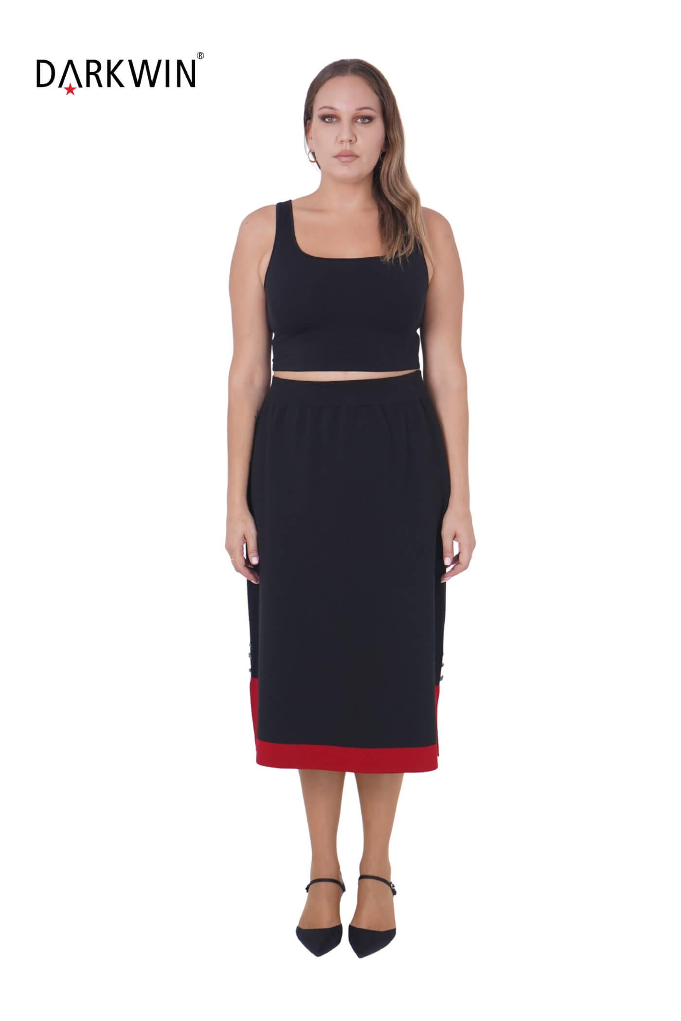 B14419 DARKWIN BLUZ-ETEK SIYAH-KIRMIZI