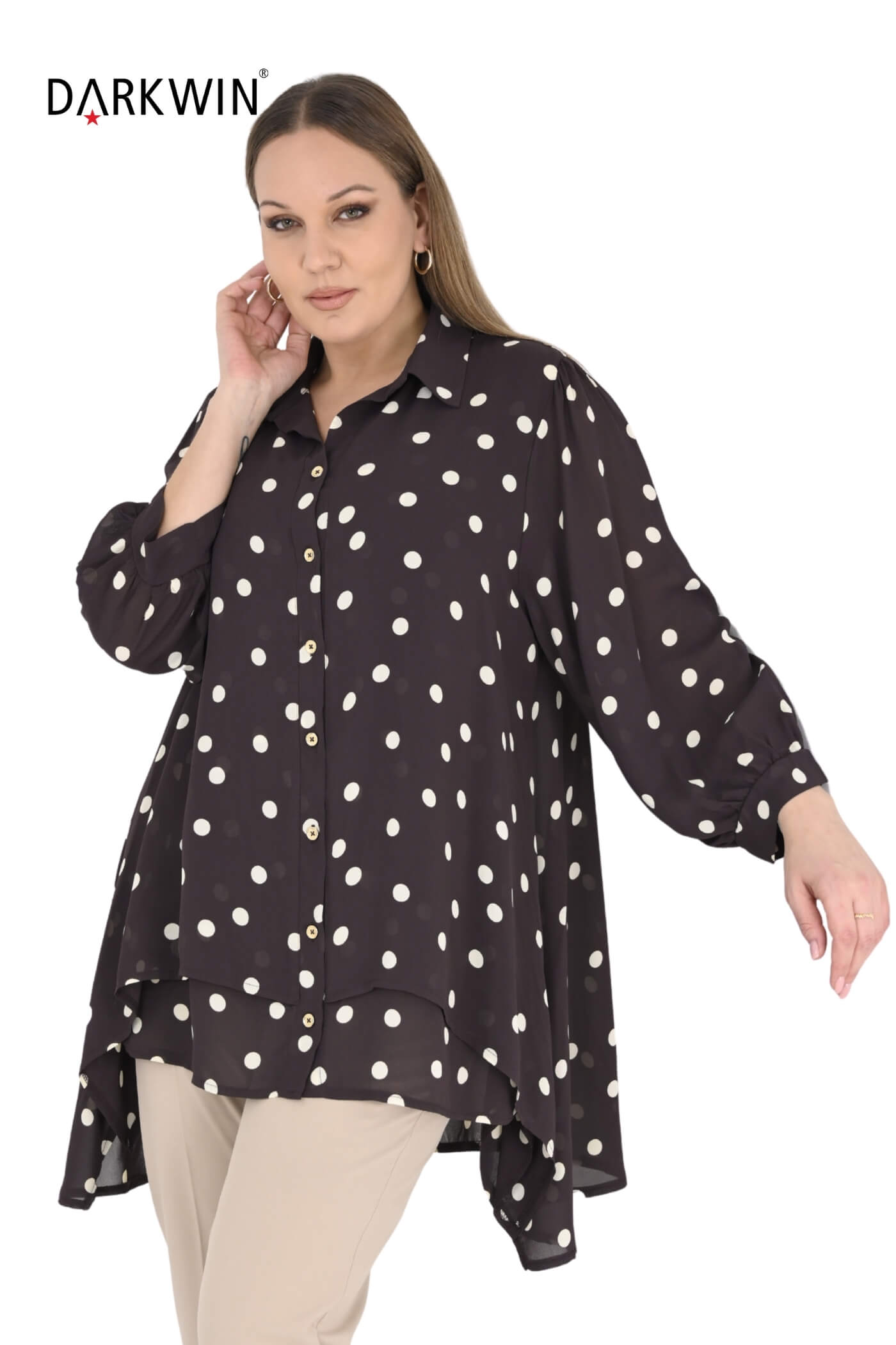 B3924 DARKWIN GÖMLEK KAHVE-BEYAZ