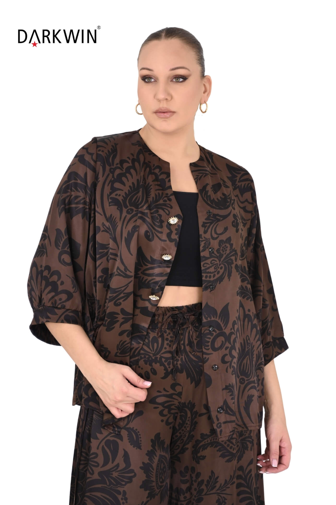 B3963 DARKWIN BLUZ-PANTOLON KAHVE