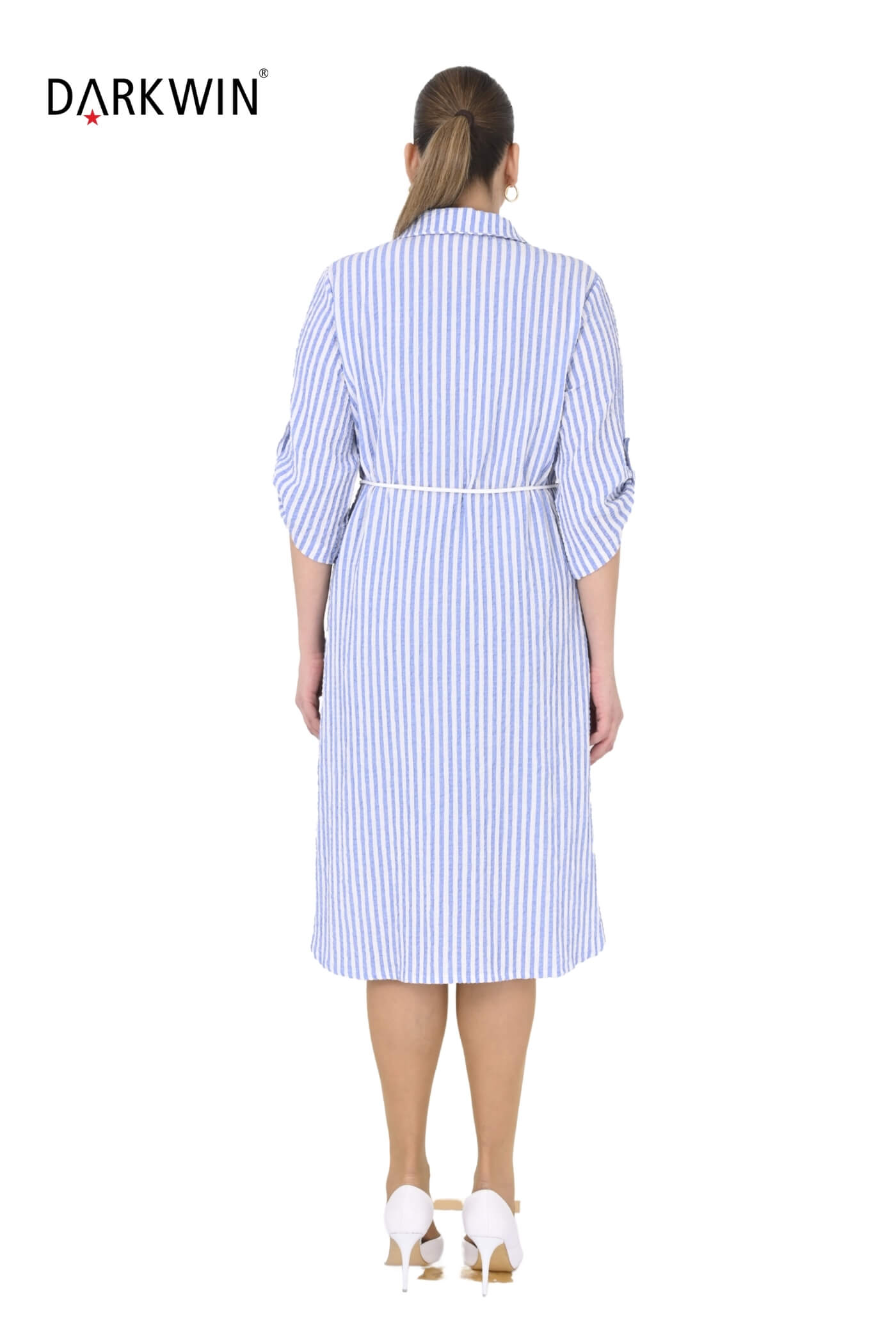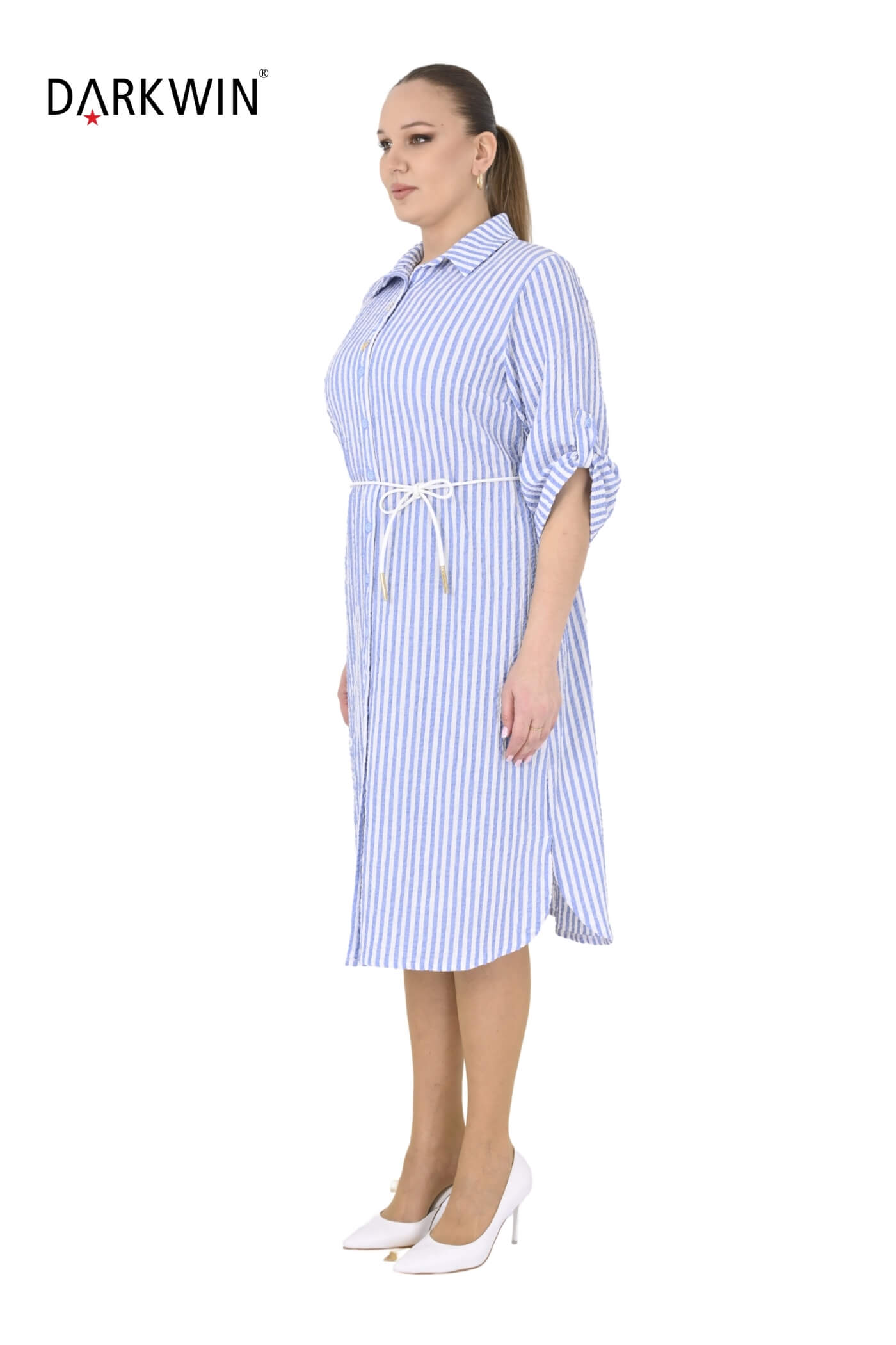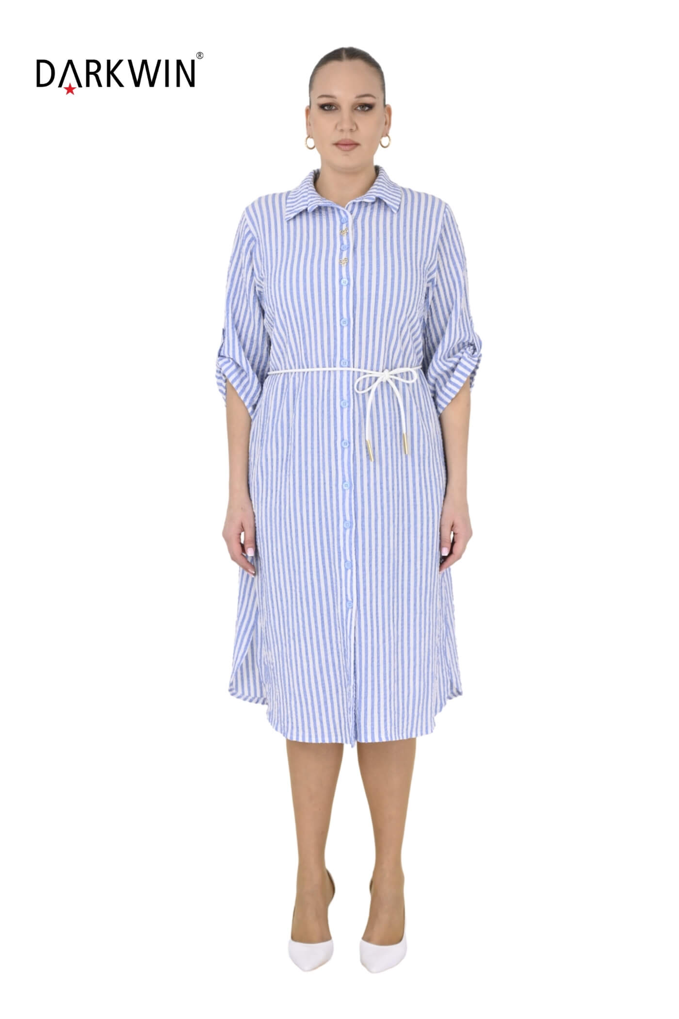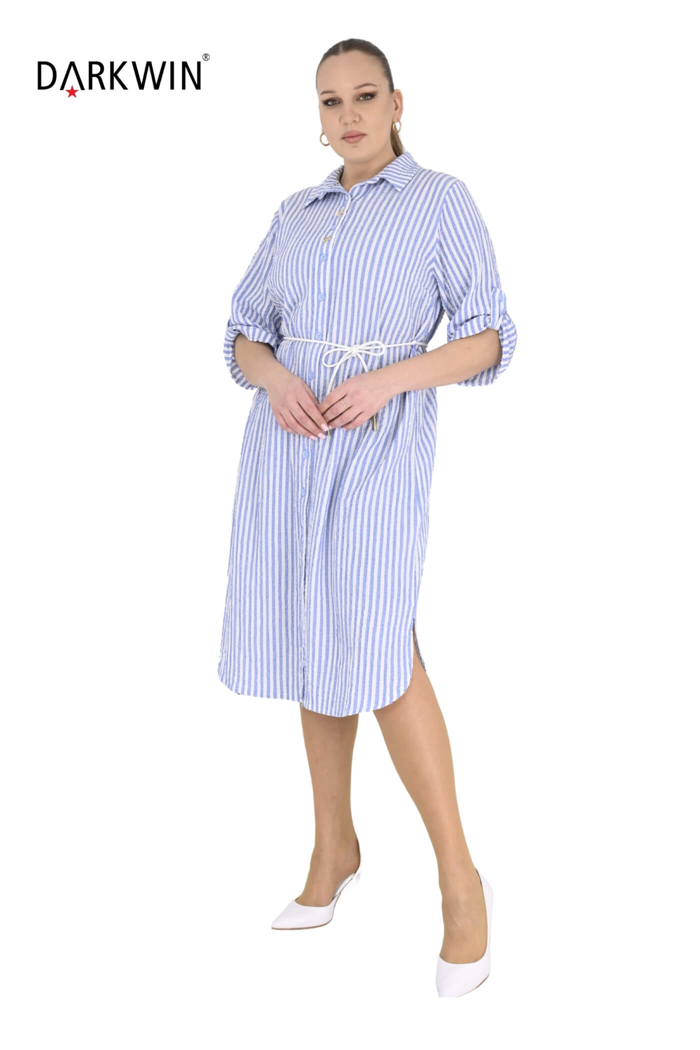 B4073 DARKWIN GÖMLEK ELBİSE MAVI-BEYAZ